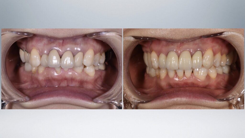 将来に備えて歯牙が残っているうちに矯正治療をおこなった症例(マウスピース矯正、セラミック修復)