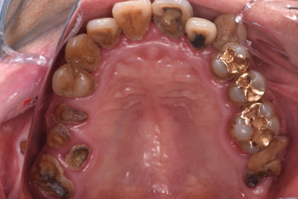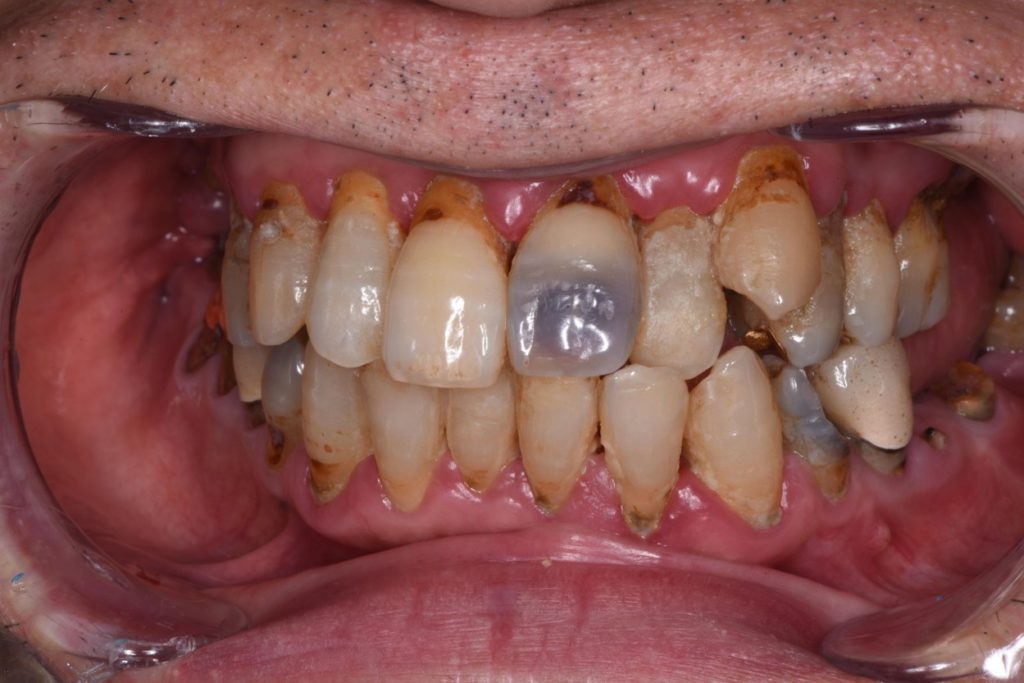 | 診断名 | 前歯審美障害(う蝕、歯牙の変色による)、全顎的咬合崩壊 |