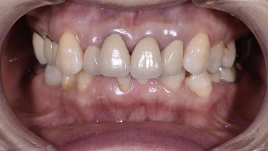 将来に備えて歯牙が残っているうちに矯正治療をおこなった症例(マウスピース矯正、セラミック修復)