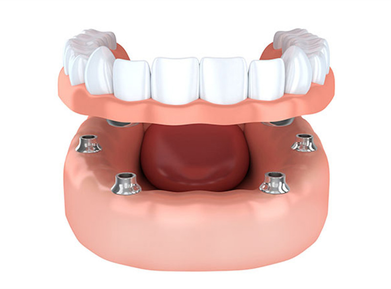 オーバーデンチャーとは、インプラントまたは残存歯を支えとして、入れ歯を装着する方法です。通常の入れ歯が粘膜だけで支えるのに対し、オーバーデンチャーはインプラントや歯で支えるため、より安定感があり、噛み心地が良いのが特徴です。
