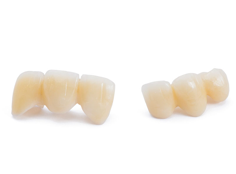 セラミックブリッジとは、歯を失った場所にセラミック材料で人工歯を作り、両隣の歯を支えとして、橋渡しをするように繋げる補綴治療のことです。橋を架けるように見えることから「ブリッジ」と呼ばれています。
